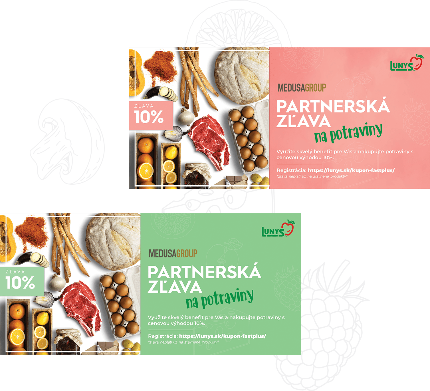 Vytvořili jsme jedinečný design poukázek, které společnost Lunys dává svým obchodním partnerům. V jejich designu jsme použili hravé barvy a svěží vizuály potravin.