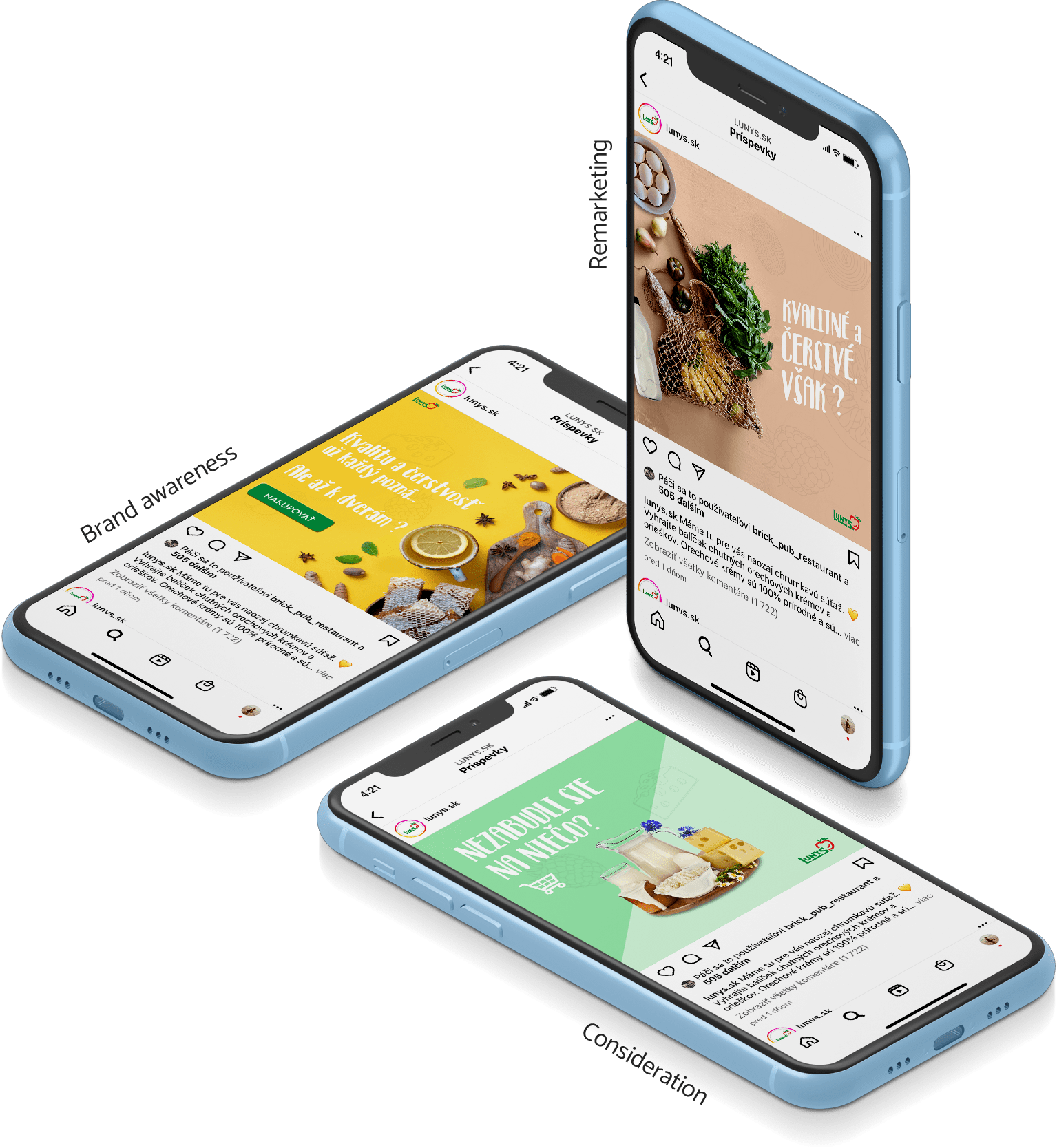 Vytvořili jsme sadu kampaní, které oslovují potenciální zákazníky v různých fázích nákupního procesu. Pomáhají budovat povědomí o značce, zaměřují se na lidi, kteří opustili nákupní košík na webu, aniž by provedli platbu, a motivují stávající zákazníky k nákupu dalších potravin.