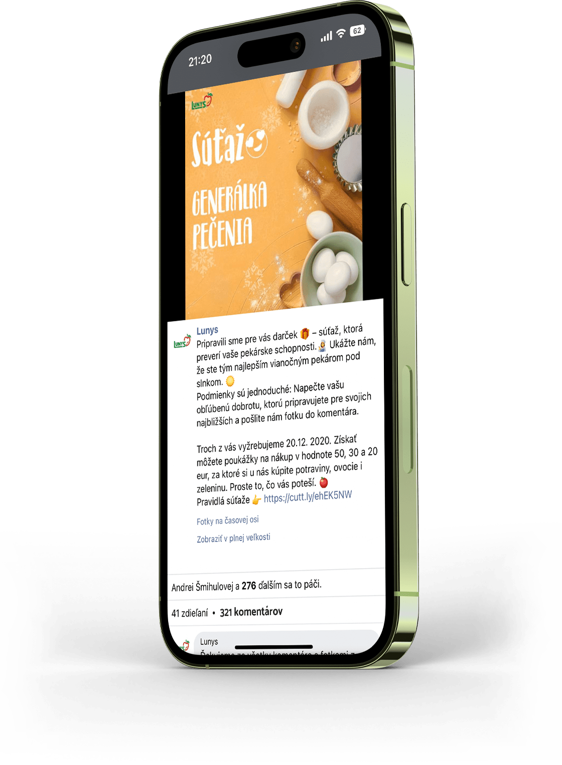 Na začátku prosince jsme na facebookové stránce Lunys vyhlásili jedinečnou soutěž, kterou jsme nazvali „Generálka pečení“. Cílem bylo vytvořit silnou interakci s publikem a zvýšit tak organický dosah značky na sociálních sítích.
